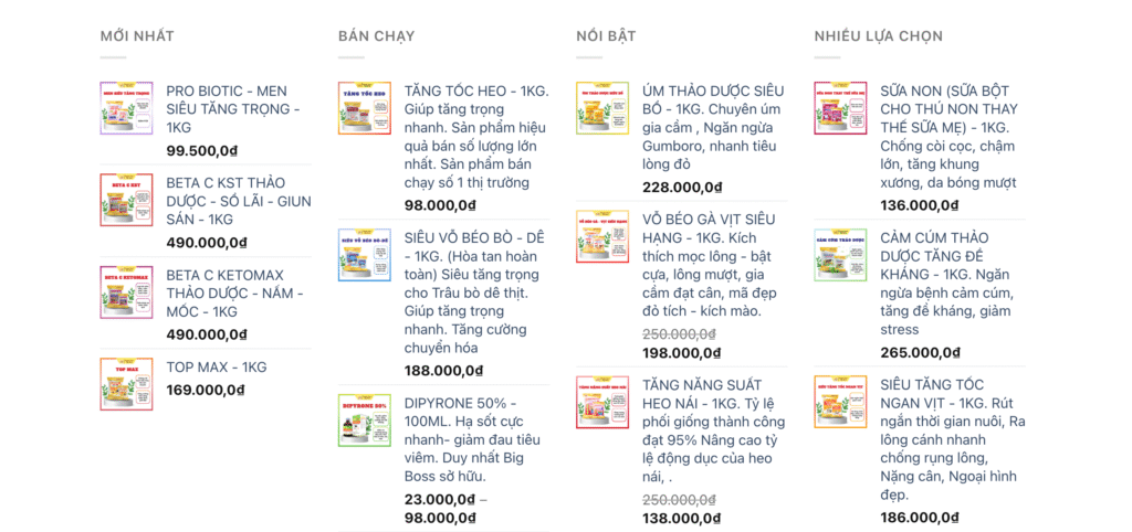 Chúng tôi luôn luôn không ngừng tìm tòi và nghiên cứu, nâng cao chất lượng sản phẩm, tìm ra những sản phẩm mới phù hợp với mọi khách hàng. Đến nay, BIG BOSS đã trở thành một trong những Công ty có uy tín hàng đầu trong việc Chuyên Phân Phối Thuốc Thú Y – Thủy Sản – Chế Phẩm Sinh Học – Thức Ăn Bổ Sung dùng trong chăn nuôi